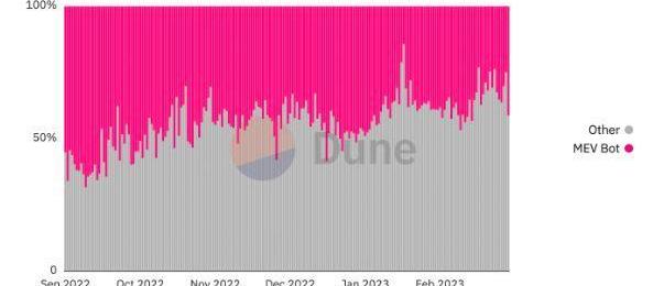 現實與否,這是UNI在BTC術語中的市值所收取費用的下降可能歸因于Uniswap協議上的大量機器人活動。DuneAnalytics的數據表明,MEV機器人占DEX總交易量的41.1%。
