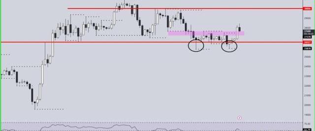 BTC的技術面還顯示,在多次未能跌破26.5k的局部支撐位之后,價格最終通過突破關鍵阻力位27.5k表明了意圖,盡管它已在隔夜回落至下方。