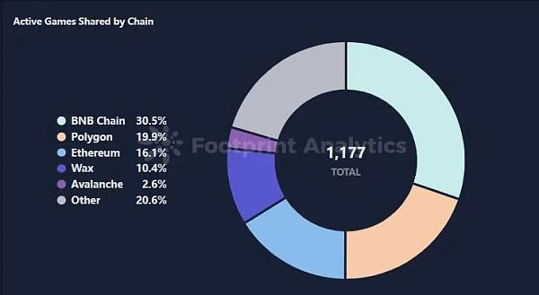 本月共有 1,177 款活躍游戲保持了用戶參與度。特別值得注意的是,在活躍用戶方面,BNB鏈占比達到 30.5%。