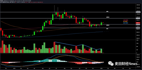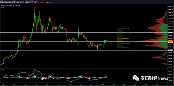 2019年下半年,比特幣價格一直十分萎靡。在11月和12月的大部分時間里,比特幣一直都在努力的突破7600美元的阻力位。不過過去一周,受到伊朗局勢的影響,比特幣一周內大幅上漲了11%,收于8180美元。