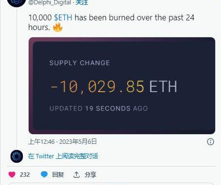 據DelphiDigital報道,以太坊最近在24小時內大量銷毀了10,000ETH。