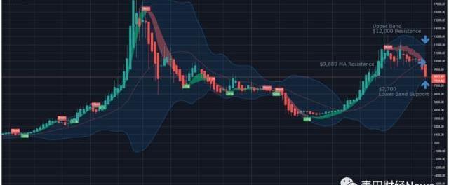 另外,還有兩個重要的阻力位,一個就是布林線中軌,為8890美元,另一個則是布林線上軌,為10672美元。