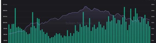 鯨魚對CAKE的興趣似乎也有所下降。事實上,鯨魚的交易數量出現下降。而且,Dune的數據指出,過去幾個月CAKE的總交易筆數并沒有增加多少。