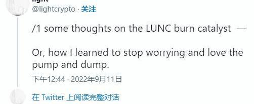 一個擁有超過16.9萬粉絲的Twitter賬號lightcrypto在推特上寫道:“想想LUNC銷毀交易的崩潰吧。”注意到破壞的勢頭。電梯故障是一個很大的可能性。