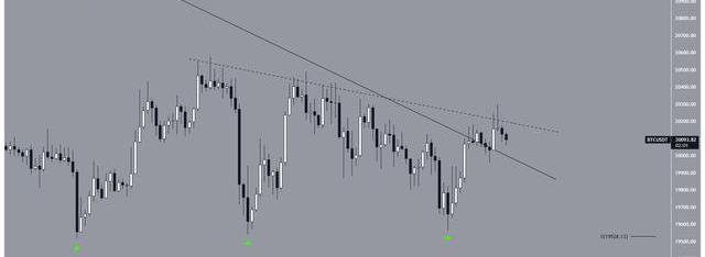 從技術上講,比特幣仍然在更短的下降阻力線下進行交易,到目前為止,這條阻力線已經引起了無數的拒絕,并產生了長長的上燈芯。