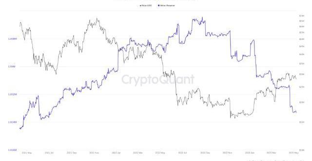 BTC儲備處于兩年低點,這表明比特幣礦工仍在努力應對2022年熊市的后果。來自鏈上分析平臺的數據顯示,盡管到2023年BTC價格出現回升,但礦工錢包中的BTC數量仍處于下降趨勢。礦工目前持有1,826,695BTC,這是自2021年7月以來的最低水平。