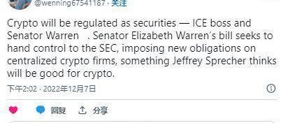 參議員伊麗莎白沃倫和洲際交易所首席執行官杰弗里斯普雷徹都表示,大多數加密貨幣在美國將作為證券受到監管。