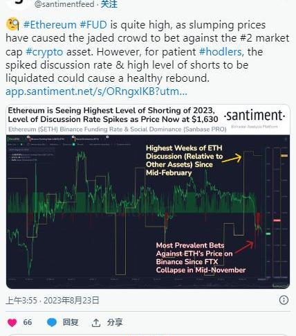 在8月17日大量流動性退出的第二天,加密貨幣交易所針對主要山寨幣以太坊的空頭頭寸達到了今年迄今為止的最高水平。