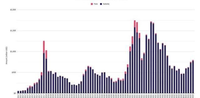 3、比特幣礦工收入在四月份持續增長至7.971億美元,但漲幅不大,僅為5.5%,同時以太坊質押收入也增長了10.6%,達到2.399億美元。以太坊Shanghai-Capella主網升級已在4月12日完成,質押的ETH也可以被提取。