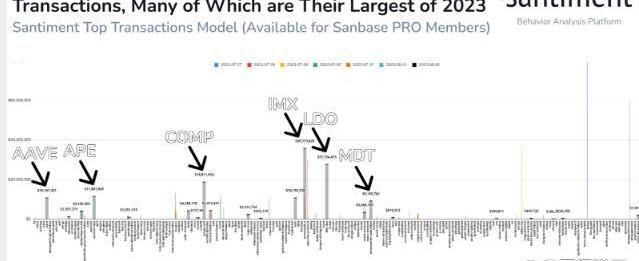 Aave(AAVE)、Apecoin(APE)、Compound(COMP)、ImmuableX(IMX)、LidoDAO(LDO)和MeasurableDataToken(MDT)等流行的山寨幣一直吸引著鯨魚。然而,這些鯨魚的運動在市場上引起了很多猜測,其中之一可能是為即將到來的山寨幣反彈做準備。因此,現在監視鯨魚的活動和行為以預測其即將在空間內移動非常重要。