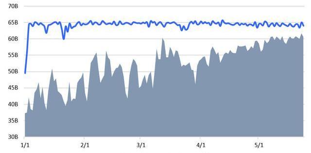 總燃料使用量被礦工設置的區塊燃料限制所限制,這通過確定一個區塊中有多少交易來限制以太坊區塊鏈的大小。每個區塊中使用的燃料量一直在穩步增長,從一月份的69%上升到撰寫本文時的95%,并且也接近目前規定的上限。