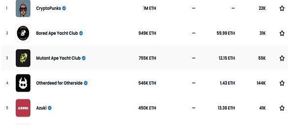 2017年6月工作室LarvaLabs推出像素風NFTCryptoPunks,2022年“無聊猿”母公司YugaLabs將其收購,CryptoPunks稱得上是NFT的鼻祖。CryptoPunks發行共一萬個NFT,每個NFT代表不同的「朋克風」像素風頭像。在CryptoPunks網站上,每個朋克像素頭像都有自己的資料展示,顯示他們的屬性特征及所有權和出售狀態。其中的3100號和7804號在2022年3月11日均以4200ETH價格成交,按照當時的ETH價格計算,成交價格約在7566萬美元。CryptoPunksm#5822在2月份時,以當時破紀錄的最高價8,000ETH在市場售出。