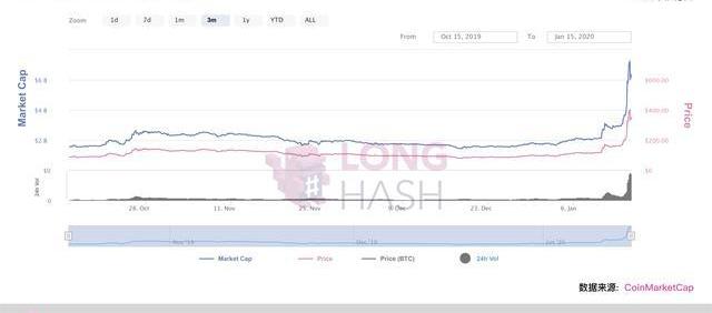 BitcoinSV是2018年BitcoinCash硬分叉的產物。2020年迄今為止,它的表現已經給市場留下了深刻的印象。事實上,在1月10日左右,BitcoinSV的價格已經出現一次拉高,接著在14日開始,BitcoinSV的價格迅速躥升,在24小時內價格漲幅高達近150%。