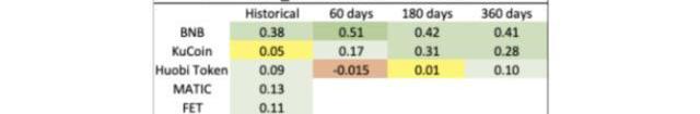 這一次,下表顯示了投機需求率與幾個小規模資產價格的相關性,以此來概括所有新發行的比率,而不僅僅是2019年的IEO。