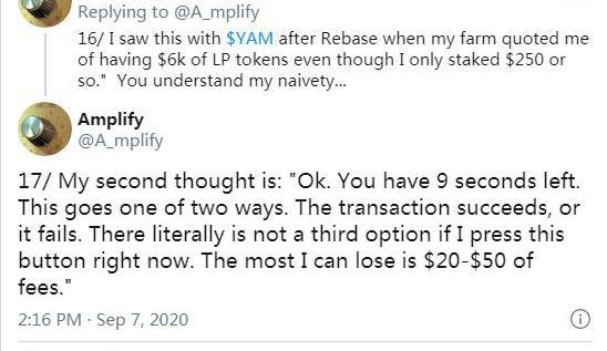 正如我們現在所知道的,這筆交易獲得了回報,Amplify自稱擁有自己的“小交易賬戶”,接近270,000美元,因為rebase發生時,他通過向其提供ETH并將ETH從其他SYFI手中奪走。