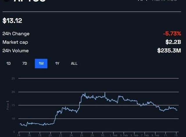 APT上個月達到19.92美元,但此后下跌了34%,代幣解鎖加速了這些損失。