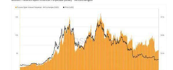 正如我們在下圖看到的那樣,隨著利率在過去一年穩步上升,所有交易所的杠桿都被擠出了系統。未平倉合約目前處于2021年初以來的最高水平。
