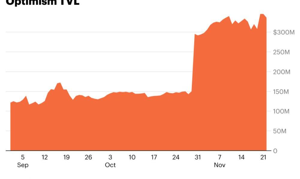 Optimism在其采用曲線上較早,在7個deFi應用程序中部署了超過3億美元的TVL,其中最著名的是Uniswap、Synthetix和1inch。