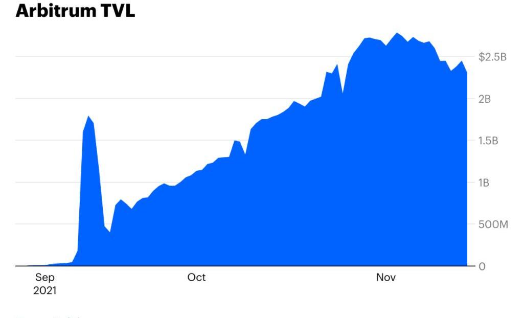 Arbitrum走得更遠,在60多個應用程序中的TVL約為2.5B美元。