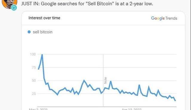 “Googlesearches”顯示“賣出比特幣”的搜索量處于2年來最低點。