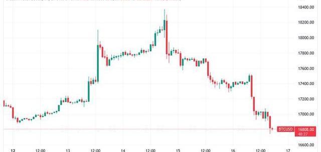 比特幣隨著美國股市繼續下跌,12月16日華爾街開盤后,比特幣似乎將下跌17,000美元。