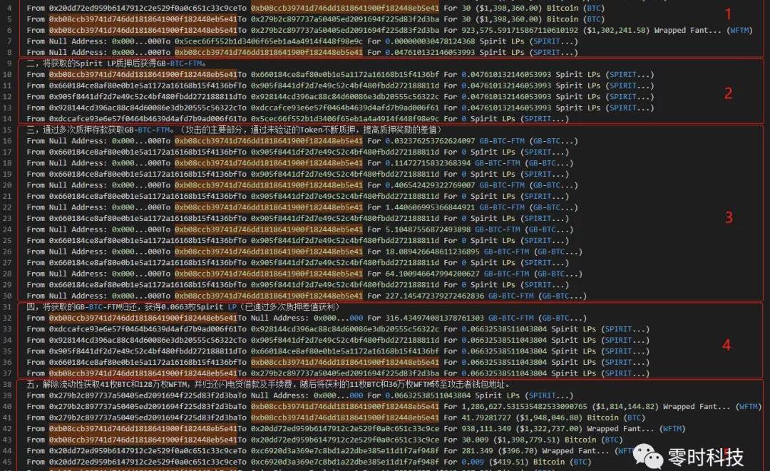 攻擊者通過9筆攻擊交易共獲取累計獲取26萬枚BTC,1865萬枚,75萬枚DAI,75萬枚USDC,13萬枚BOO,價值約3000萬美元。