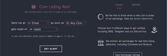 1.監控新上市。你可以使用像這樣的網站crypto_alerting每當列出新硬幣時向您發送警報。如果您處于新列表的頂部,這可能會幫助您抓住“列表泵”