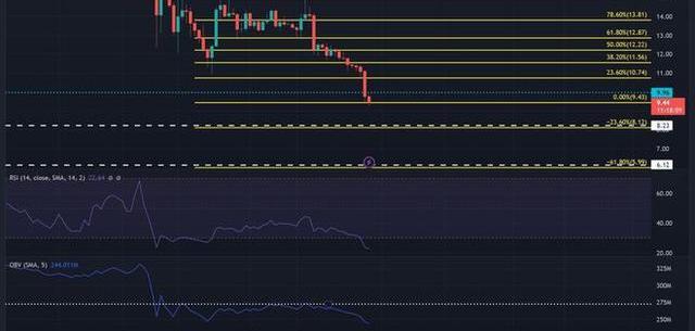 平衡量(OBV)也大幅下降,消除了加強購買壓力所需的交易量。因此,賣壓加劇并推低SOL。如果拋售壓力在發稿時繼續其軌跡,則有可能跌破9.43美元。