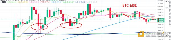 今天盤面有所分化,老二ETH 表現的欲望強烈,阿斗BSV 則繼續拖后腿,近四個月我通過對比 LTC/BTC 走勢發現,主流幣跟跌不跟漲的情況居多,所以操作應當以 BTC做為基準參照。BTC 走勢正如昨天所說,價格仍在 9000-9300 區間做震蕩整固,我覺得該狀態還會繼續維持,等待10日均線靠近后再選擇方向。