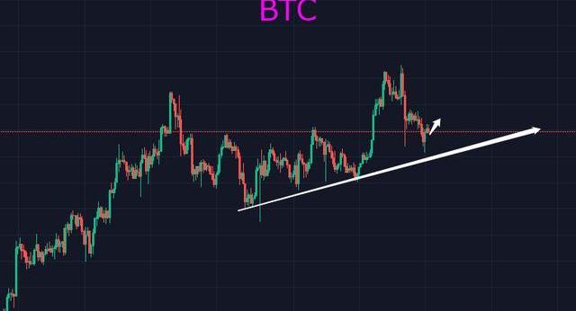 這是BTC的小時的價格路線圖,可以看出幣價是在趨勢線以上,那就可以肯定價格還上升趨勢之上,但還是不見價格的一個抬手動作,只算出現一個次級別反彈,這個時候市場就迎來飆升。