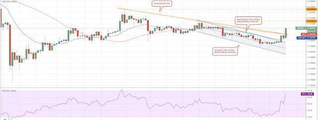 兩條移動均線均在上升,RSI已升至60以上,這表明多頭具有優勢。