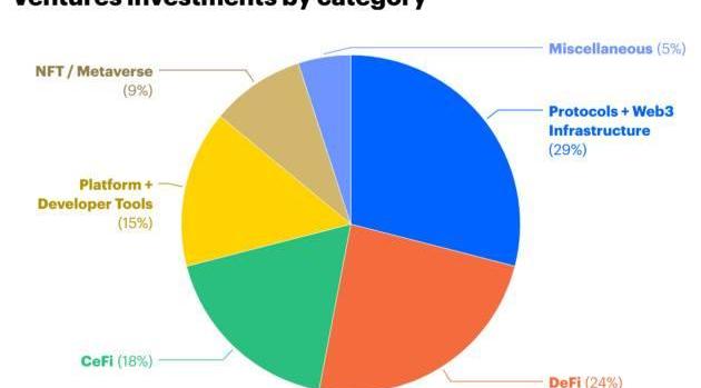 具體而言,在CoinbaseVentures六大投資類別中,協議+Web3基礎設施占比最大,其他類別為DeFi、CeFi、平臺+開發工具、NFT+元宇宙和其他。