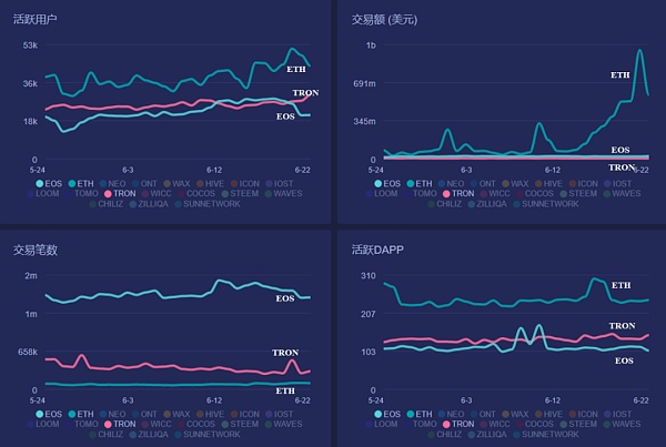 EOS、ETH 和 TRON 的對比(數據來源:DAppReview)