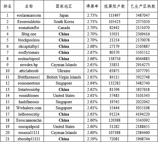 EOS 出塊節點信息(數據來源:EOSPark,2020年6月24日)