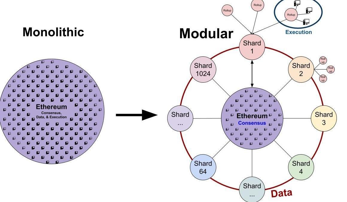 現在我們處于這個階段,清楚的是,以太坊正在開發一個模塊化的設計架構。使區塊鏈成為“區塊鏈”的屬性正在被區分和分割,以使每個區塊鏈變得獨立而最大化。