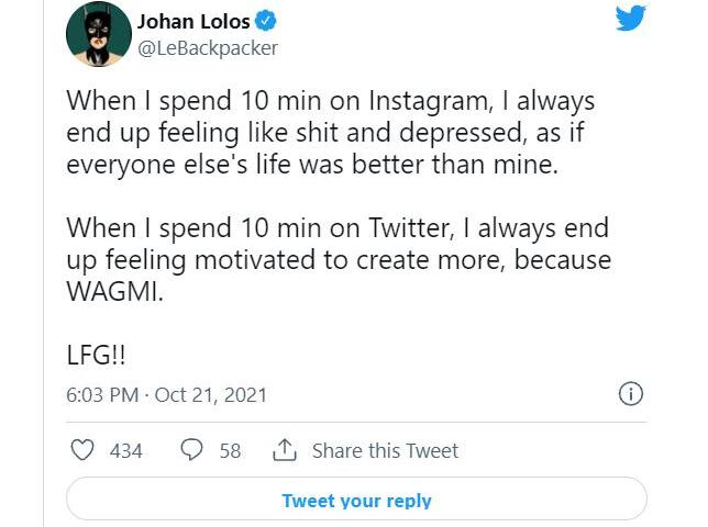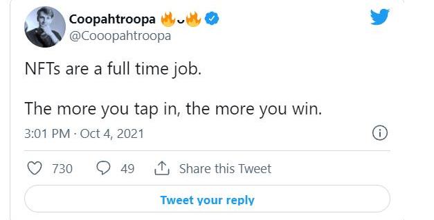 如果你是一個年輕人,厭倦了文化戰爭的僵局,被網上的主流社交平臺所疏遠,你不會被這樣一個有著無休止的樂觀主義,且承諾給你巨大的財富和積極的變化的社區所吸引嗎?特別是如果這個社區能夠為你提供某種有社會價值的獨家會員資格?(這可能是為什么基于加密代幣的經濟的潛在高環境成本很少得到Web3信徒的關注的一個原因)。我的意思是,我明白:與很酷的人一起玩耍,為更好地改變世界,以及成為百萬富翁,也是我最感興趣的三個方面。但是,對于所有社會革命的承諾,DAO運動的基本修辭是非常熟悉的:它是硅谷的技術樂觀主義、電視布道者的繁榮福音和你高中同學在Facebook上關于康寶萊的帖子的合并。知名人士,如FriendsWithBenefits的聯合創始人CooperTurley,一個25歲的自稱是加密貨幣百萬富翁的人,將他們的Twitter賬戶作成了LinkedIn風格的激勵性研討會: