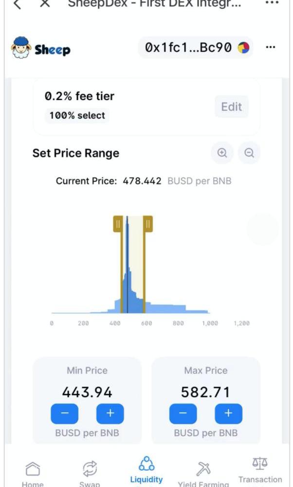 為了提高LP們做市資金的利用率,SheepDex的LP們在做市時,價格區間可以自行選擇,而不是像之前那樣將資金平均分配在0至正無窮的區間內,這樣就可以大大提高做市資金的使用效率了,也就意味著同樣的資金量,在SheepDex做市可以帶來更高的收益。