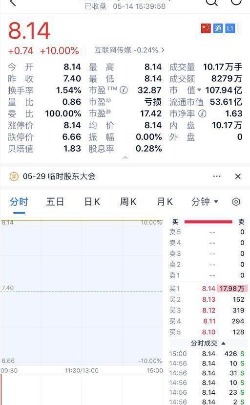 而智度股份5月14日公告擬定增募資投入直播電商生態平臺等,開盤一字漲停,市值暴增9.81億元。