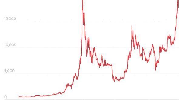 在加密貨幣上次飆升至該水平三年后,比特幣的價格已達到近20,000美元的歷史新高。根據比特幣價格指數CoinDesk的數據,周一下午,一個比特幣的價值19,850.11美元。到周一晚上,其價值回落至約19,223美元。
