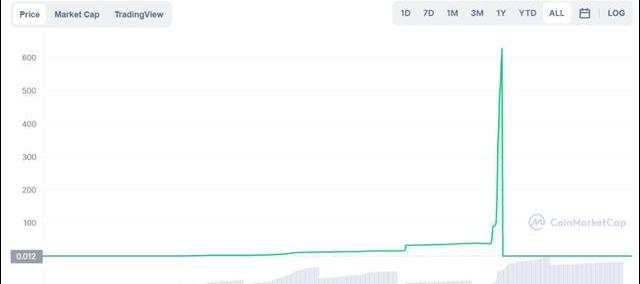 然而,在美東時間11月1日,魷魚幣突然閃崩,5分鐘內從每個幣2861美元跌到了0.0007美元,跌幅為99.999976%,價值幾近清零。