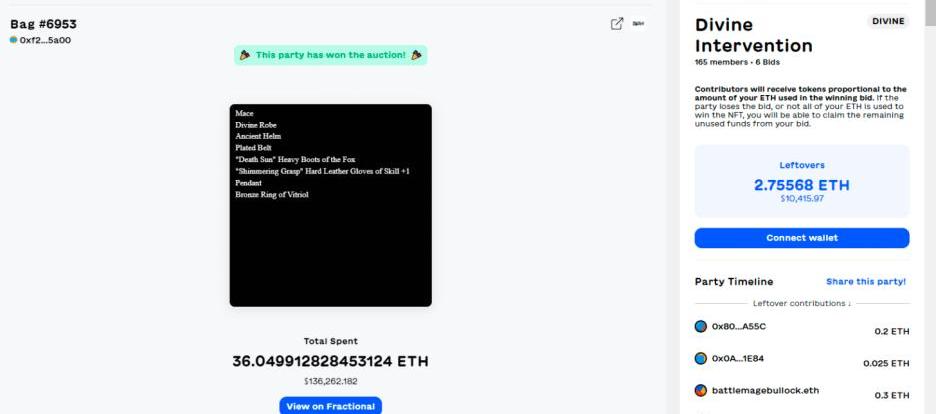 0xinventory.app-按稀有度對Loot進行顏色編碼的工具。$AGLD-AdventureGold,一種用于故事構建的治理代幣,已用于對Loot第1章進行投票。TheGrandExchange-一個由Zora協議支持的前端Loot拍賣行,它為通過PartyBid對Loot物品進行分組投標鋪平了道路。