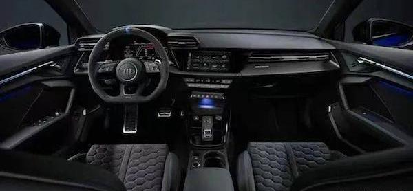 內飾方面與現款A3幾乎一樣,但是細節做工和用料都得到了很大的提升。RS家族式平底方向盤讓你無時無刻不感受到強大的運動基因,翻毛皮材質自帶超強防滑性能,12點方向的藍色標記更是充滿了性能暗示。液晶儀表的整體風格也變成了RS系列極具戰斗力的設計,一腳油門讓轉速逼近紅線的感覺讓腎上腺素得到極速提升,或許這就是RS系列帶給你的獨特魅力。