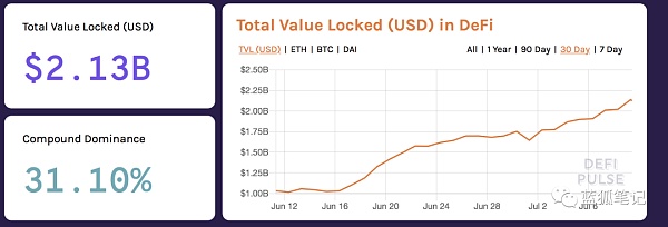 從Compound和Balancer開啟流動性挖礦以來,DeFi上鎖定的資產,不到一個月時間,從10億美元漲至超過20億美元,其中絕大部分都是由流動性挖礦貢獻的,要知道這段時間ETH價格不升略降。