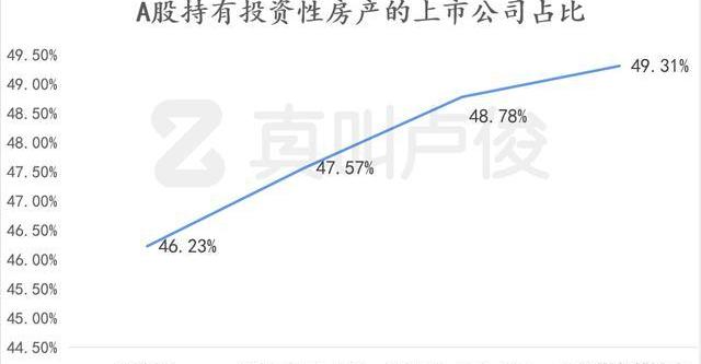 先來看一個數據,這幾年,A股持有投資性房地產的企業占比,逐年上漲