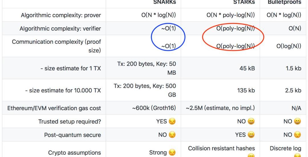 STARK協議和SNARK(Groth16/PLONK)協議比較: