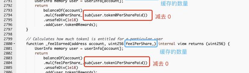 user.token0Rewards與user.token1Rewards變量進行記錄,如下圖所示: