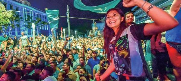 2019年2月3日,支持者們慶祝他們的候選人布克萊在薩爾瓦多總統選舉中獲勝