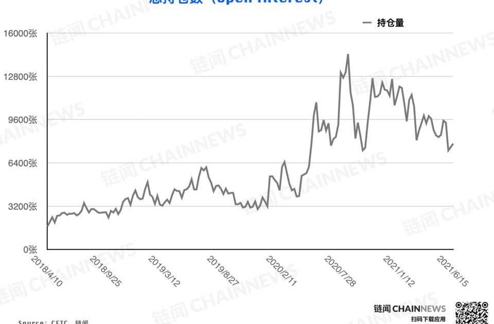 總持倉數量在最新一期數據中自7566張進一步反彈至7823張,此前該數值出現大幅下降后,最近兩個統計周期內市場的持倉總量保持溫和反彈勢頭運行,5月中下旬急跌跳水制造的恐慌情緒得以逐漸修復,不過考慮到目前該數值距離跳水前仍有較大差距,因此市場仍處在一個相對謹慎的狀況之中。