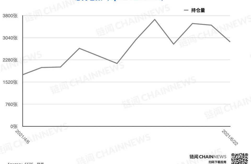 總持倉數量在最新一期數據中自3470張下降至2896張,該數值連續第二周下降,6月初的一波反彈所取得的漲幅基本遭到了全數回吐,行情的持續下跌對于以太坊合約的市場熱度造成了比較明顯的負面影響,這一點與比特幣合約存在著明顯的背離。