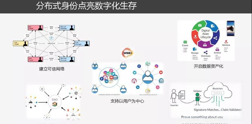 分布式身份將解決身份所有權、身份安全性以及身份互聯互信的問題,是開啟下一個互聯網時代的入口。簡單來講,基于分布式數字身份基礎設施可以實現:一是協議層的身份解決方案,促進應用孤島的融合。二是服務提供商不需要進行用戶身份管理,只需要通過API實現用戶數據的請求和驗證。三是用戶持有身份數據,控制其身份數據的授權訪問。四是每個組織都可以簡單地介入互聯網的身份層,并從已經存在的生態組織中獲益。五是能夠創造具有網絡規模效應的價值。